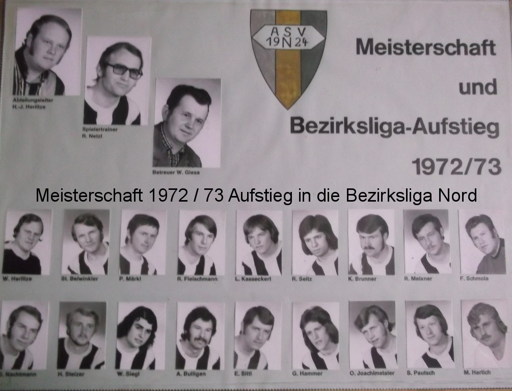 1972/73 Aufstieg in die Bezirksliga unter Trainer Rudi Netzel. |