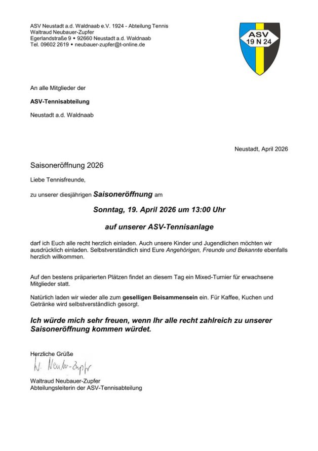 Die Tennisabteilung des ASV Neustadt a.d. Waldnaab arbeitet im Jugendtraining seit November 2015 mit der Tennisschule von Frank Prechtl zusammen. Abteilungsleiterin Waltraud Neubauer-Zupfer vertraut auf den in der Oberpfalz längst bekannten A-Trainer und Sportlehrer Frank Prechtl und freut sich mit den ASV-Kids über das professionelle Training.